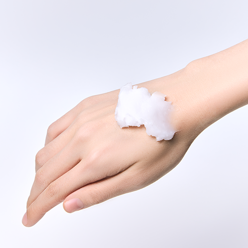 Using a spatula, take an appropriate amount and gently massage it over the entire dryface. Emulsify by adding water and rinse off thoroughly with lukewarm water